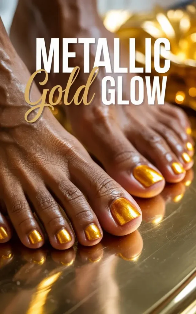 Gold is pure royalty — especially against deep skin. Metallic gold toenails add radiance, bringing out the golden undertones in your complexion. Perfect for vacations, weddings, or any day you want a “glow-up” vibe.
