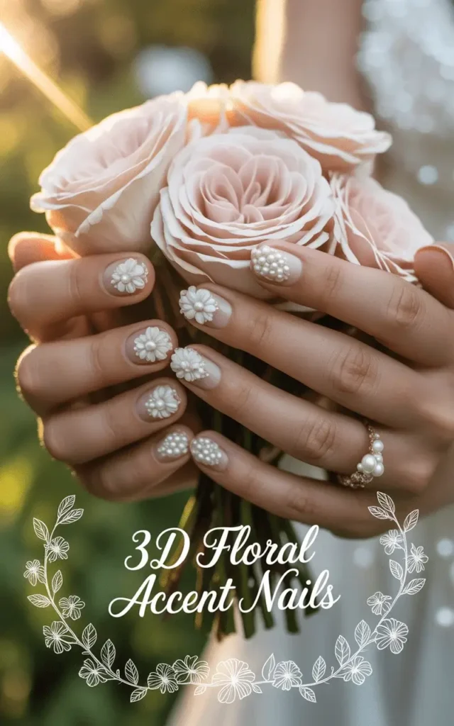 2. 3D Floral Accent Bridal Nail