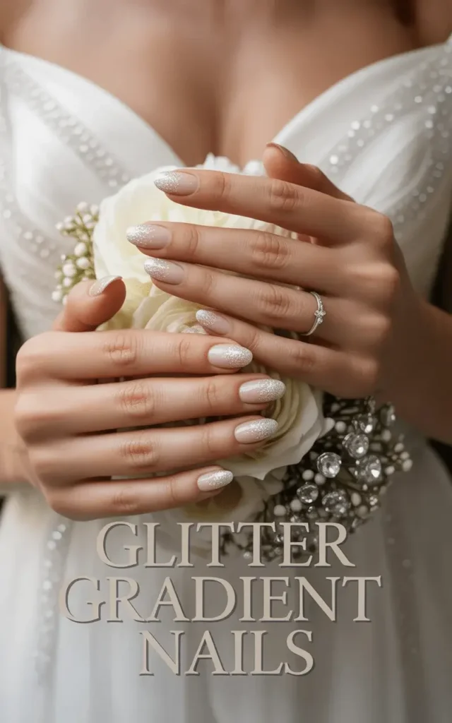 For brides who love sparkle but prefer a subtle touch, glitter gradient nails offer the best of both worlds. This design fades from soft nude or pink at the base to glittery tips, resembling a cascade of starlight. It’s versatile and timeless, ideal for both daytime and evening weddings.