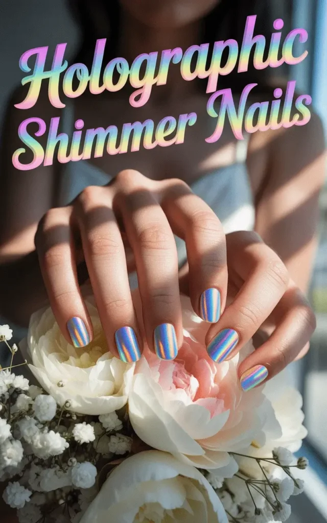 7. Holographic Shimmer Bridal Nail