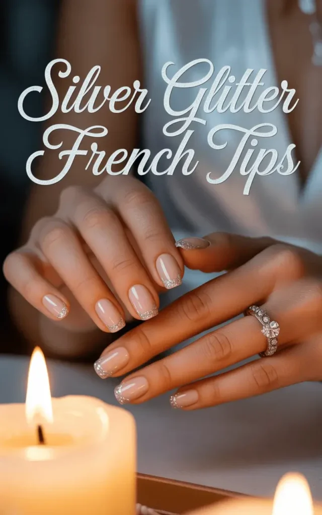 8. Silver Glitter French Bridal Nail Tips